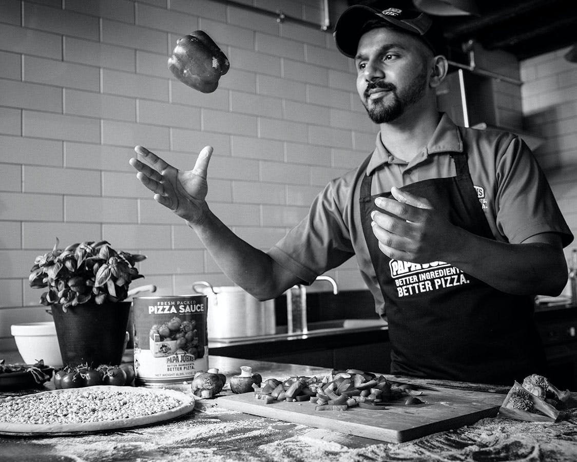 نحن نعلم أنه كلما بذلت المزيد من الجهد في شيء ما، كلما زادت قيمة مكافأتك. لذلك، من أول بيتزا تم خبزها في بدايات بابا جونز المتواضعة، من غرفة المكانس التي تم تحويلها إلى مطعم في ولاية إنديانا في الولايات المتحدة الأمريكية - إلى أكثر من 5 آلاف فرع في 45 دولة ومنطقة حول العالم - استخدمنا أفضل المكونات لصنع أفضل بيتزا. اكتشف تفاصيل صنع صلصة الطماطم الخاصة وعجينتنا الطازجة غير المجمدة، والاجبان على الطريقة الإيطالية والخضروات الطازجة واللحوم عالية الجودة.